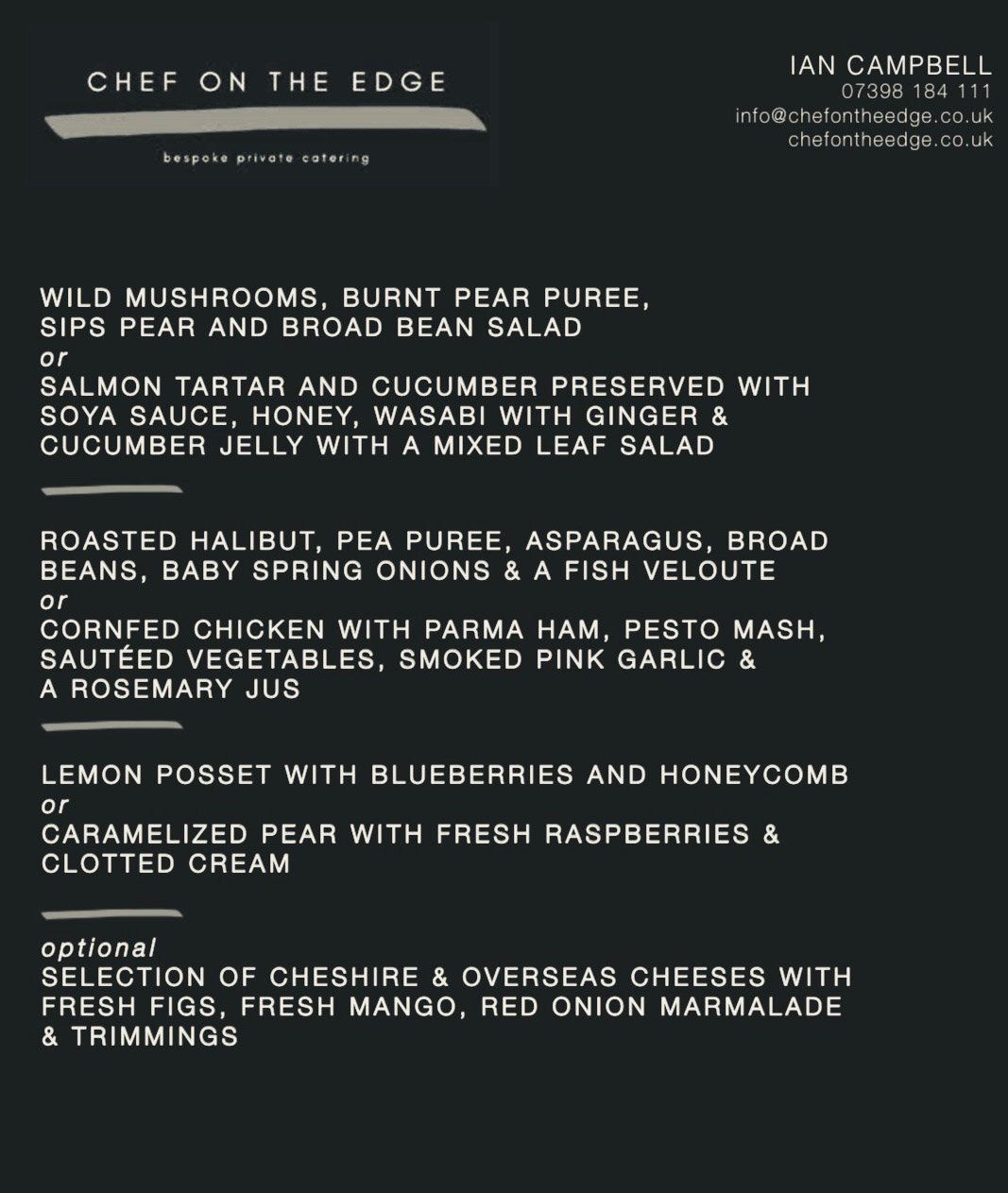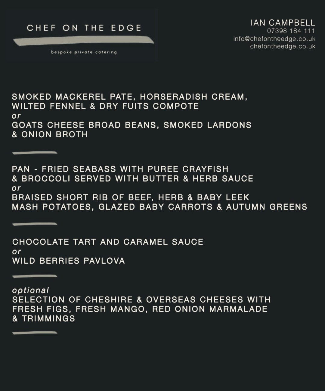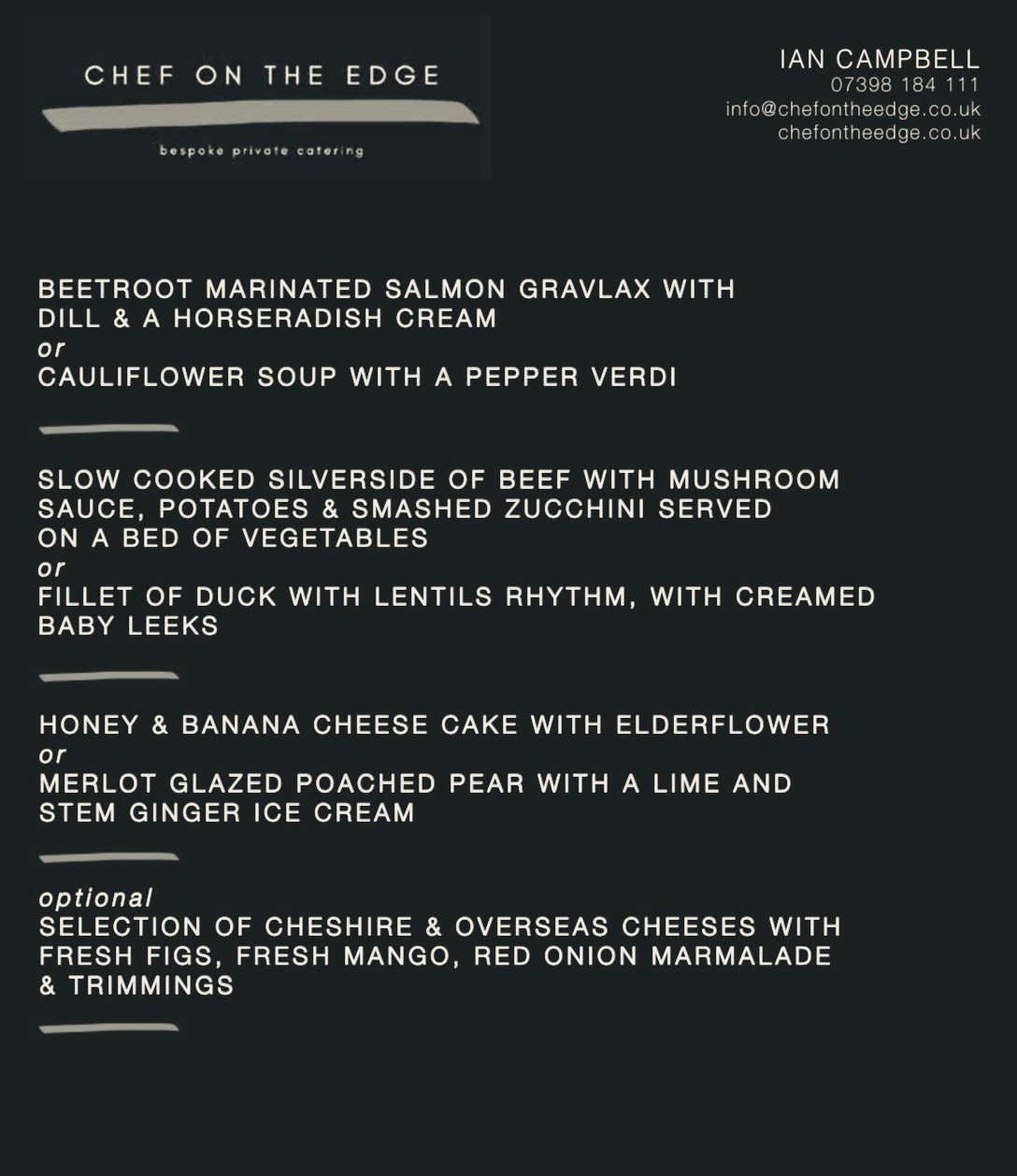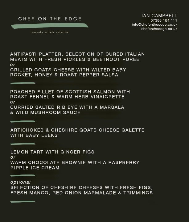 Below are some example menus we have created for clients, if you want something different please contact us to discuss your requirements